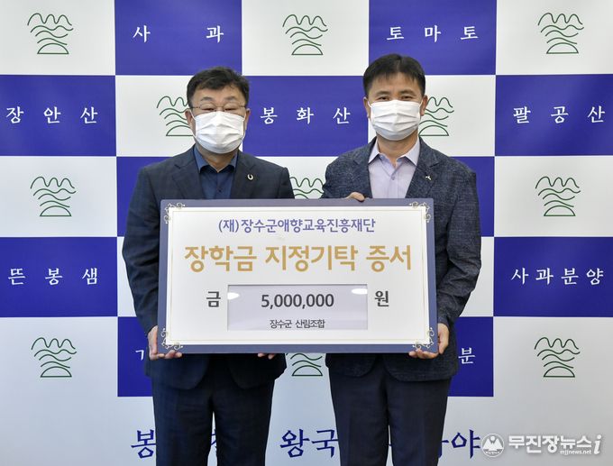 장수군산림조합(대표 한상대)가 20일 장수군청을 방문해 (재)장수군애향교육진흥재단에 장학금 오백만원을 기탁했다.