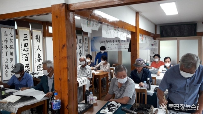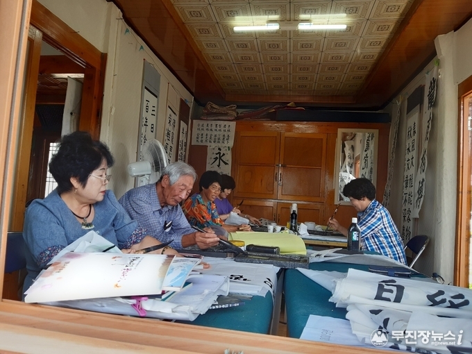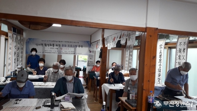 장수군 산서면사무소 경로당 내 육영당에서 운영중인 서예교실이 주민들에게 큰 인기를 얻고 있다.