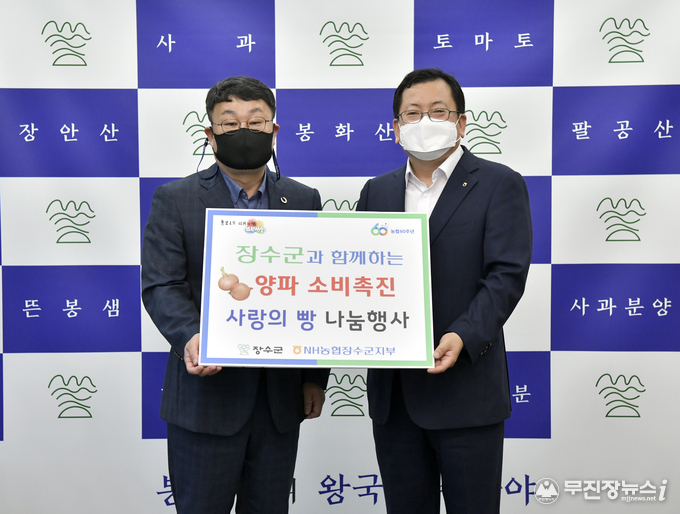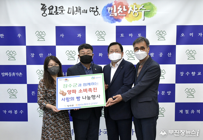 농협중앙회장수군지부는 7일 장수군청을 방문해 우리 농산물로 만든 양파빵 520여개를(100만원 상당) 장수군에 전달했다.