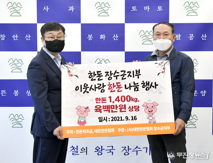 또한 16일에는 (사)대한한돈협회장수군지부(지부장 유진성)가 장수군청을 방문해 한돈 2kg 700묶음(총 6백만원 상당)의 물품을 기부했으며, 장수읍 356C 지구 장수라이온스클럽 김병길 회장은 직접 수확한 사과 75박스를, 장수읍 하리마을 박찬일 씨는 성금 100만 원을 기탁했다.