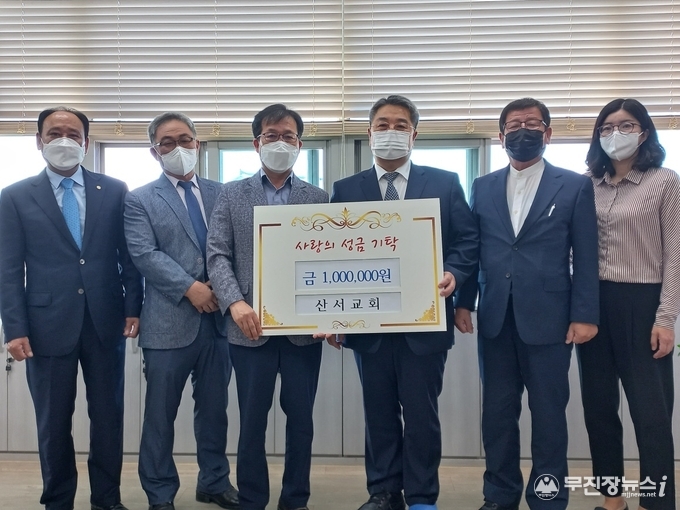 같은 날 산서면에서는 산서교회 산서면지역사회보장협의체에 성금 100만 원을 전달해 지역사랑 나눔에 모범을 보였다.