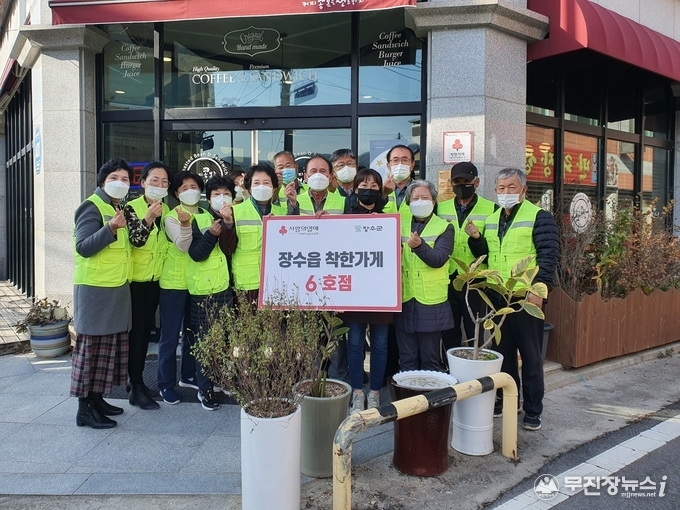 장수읍지역사회보장협의체(공동위원장 김성수, 송재기)는 16일 관내 ‘착한가게 6호점’으로 선정된 ‘콩샌 커피숍’에 방문해 착한가게 현판식을 진행했다.