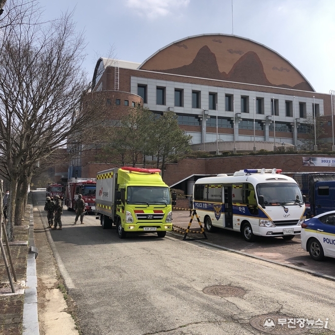 이날 훈련은 통제단으로 구성된 소방공무원과 긴급구조지원기관이 참여한 가운데 인접지역 지진여파로 문예예술체육관이 일부 붕괴되고 대형화재가 발생하여 다수사상자가 발생한 상황을 가정하여 진행됐다.