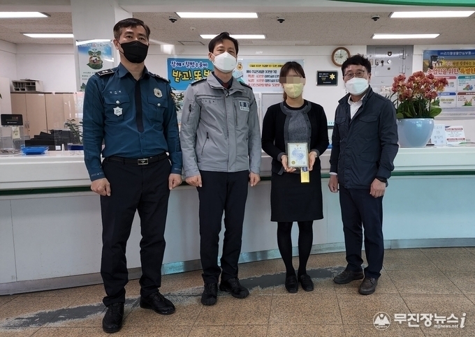 진안경찰서에서는 지난 5일(화) 보이스피싱(전화금융 사기) 범죄피해를 사전에 감지하여 신속하게 경찰에 신고하여 피해를 막은 주천농협지점 직원 오00(여,28세)에게 감사장을 수여하였다.
