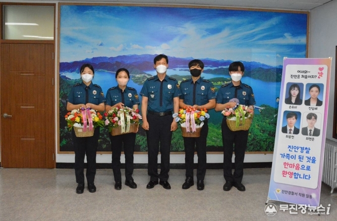 신임 순경 4명은 중앙경찰학교 310기로 경찰에 입문하여 중앙경찰학교에서 경찰관이 갖춰야 할 소양과 전문지식 등 다양한 교육과정을 이수하고 진안경찰서 마이파출소에서 현장 교육을 받을 예정이다.