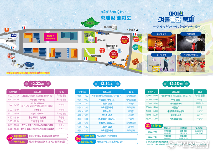 한편, 2022 마이산 겨울동화축제는 23일 개장식 이벤트를 시작으로 25일까지 3일간 매일 오전 10시부터 오후 5시까지 운영되며, 겨울에 어울리는 다양한 프로그램으로 진행될 계획이다.
