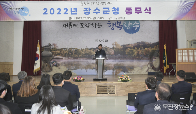 장수군은 30일 군민회관에서 공직자 140여명이 참석한 가운데 2022년 임인년 한 해를 마무리하는 종무식을 가졌다.