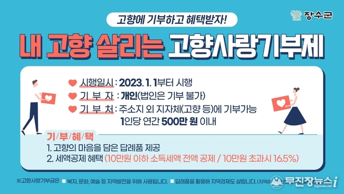 장수군이 올해 1월부터 새롭게 도입되는 고향사랑기부제의 본격 시행을 알렸다.