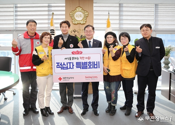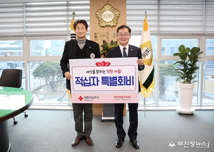 장수군의회(의장 장정복)가 9일 의장실에서 대한적십자사 봉사회에 2023년 적십자 특별회비를 전달했다.