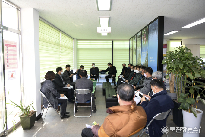 최훈식 군수는 11일 장수사과원예농협(이하 원예농협) 임원진과의 간담회를 가지고 장수사과의 발전 방향에 대해 허심탄회하게 얘기했다. 이날 간담회에는 최훈식 군수 및 군 관계자, 최연수 원예농협 조합장 및 이사 14명이 참석했다.
