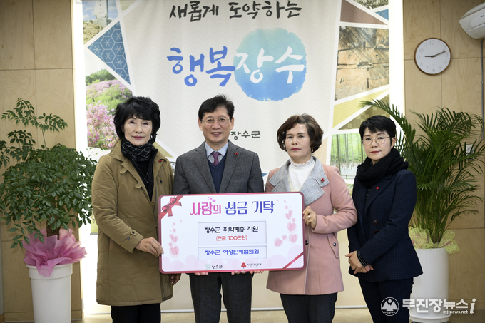 장수군 여성단체협의회(회장 김광순)와 장수군 의용소방대연합회(회장 김재문)는 회원들의 성금 모금을 통해 각각 현금 100만원과 200만원을 현금 지정 기탁했다.