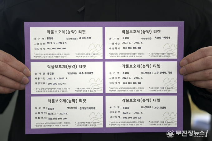 농약 티켓은 농작물 병해충 방제 지원사업 신청 농가에게 배부돼 관내 농약 판매업체에서 자율적으로 약제를 구입·사용할 수 있다.