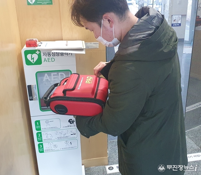 이번 점검은 일상에서 급성 심정지가 발생했을 경우 심폐 소생을 위해 사용하는 자동제세동기(AED)에 대한 안전 점검으로 주요 점검 내용은 ▲정상 작동 여부 ▲배터리 방전 여부와 유효 기간 확인 ▲패드 유효 기간 ▲보관함 알림 작동 유무 ▲안내 표지판 부착 여부 등이다.