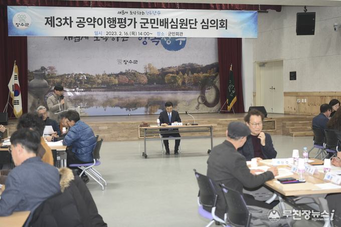 장수군은 16일 군청 군민회관에서 민선 8기 제3차 공약이행평가 군민배심원단 심의회를 개최했다.