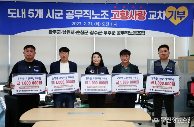 교차기부는 장수군, 무주군, 완주군, 남원시, 순창군 공무직노동조합으로 시군 간 협력을 통해 대외에 지역의 고향사랑기부제를 널리 알리고 함께 응원함으로써 자율적인 기부 문화 확산 및 지역 상생 화합을 하기 위해서 마련됐다다.
