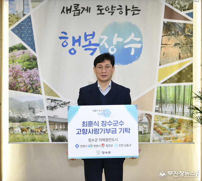 최훈식 군수가 2일 고향사랑기부제의 안정적인 정착과 기부 활성화를 위해 안양시, 창원시, 합천군, 인천 남동구 등 자매결연도시에 고향사랑기부금을 기탁하며 고향사랑기부제 동참에 나섰다.