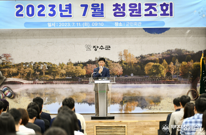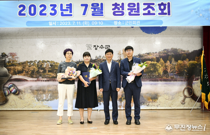 장수군은 11일 청원조회를 실시하고, 혁신적인 업무 수행으로 탁월한 성과를 창출한 3개 부서에 2023년 2분기 장수군 혁신군정상을 시상했다.
