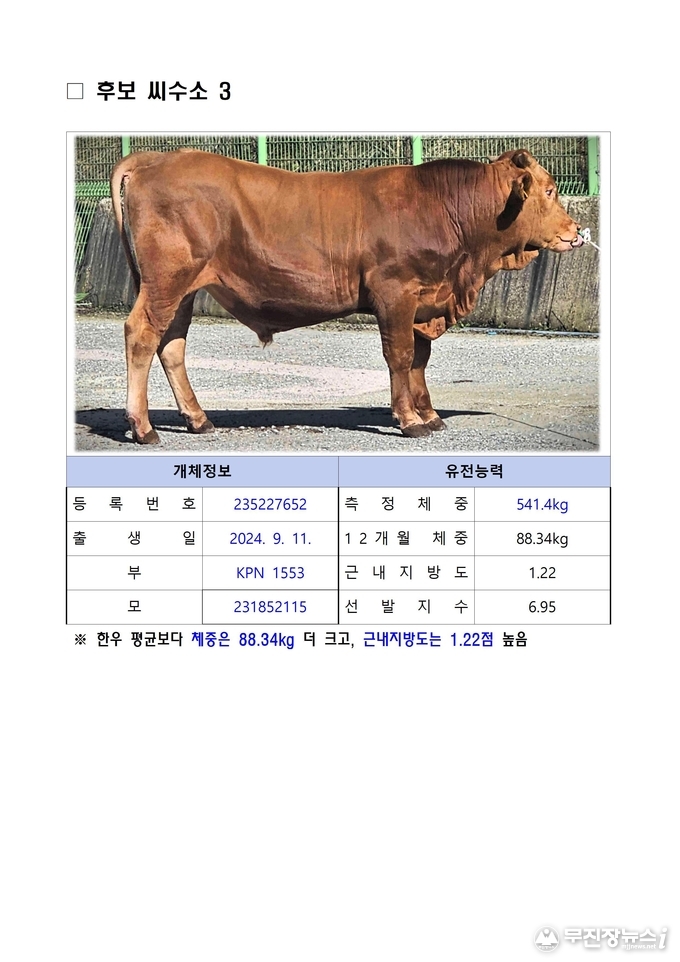 전북도는 지난 22일 국립축산과학원에서 열린 2025년도 하반기 가축개량협의회 실무위원회에서 한우 후보씨수소 3두가 최종 선발됐다고 26일 밝혔다.