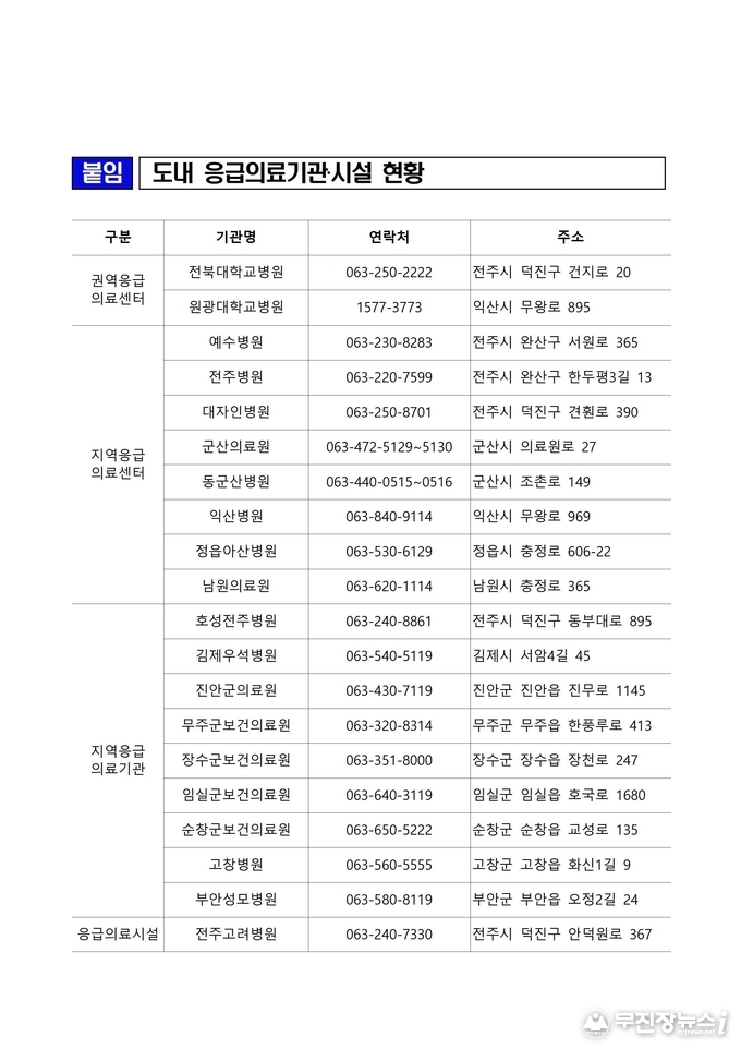전북특별자치도는 추석 연휴인 10월 3일부터 9일까지 7일간 도민들의 의료기관 및 약국 이용 불편을 최소화하고, 응급환자 진료 및 대량 환자 발생에 대비하기 위해 응급진료체계를 가동한다고 밝혔다.