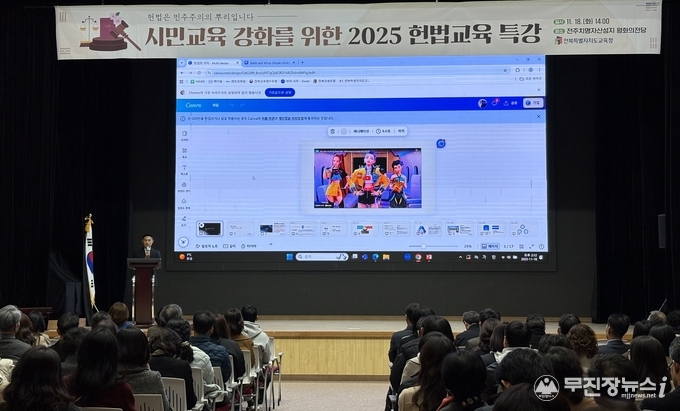 전북교육청은 18일 오후 2시 전주 치명자산성지 평화의전당에서 ‘2025년 교원 대상 헌법교육 특강’을 개최했다고 밝혔다.