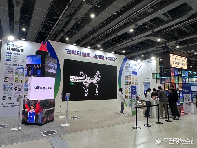 전시관은 전주 하계올림픽, 문화유산과 관광자원, 전북사랑도민증 등 다양한 체험형 콘텐츠로 구성됐다. 디지털 체험존에서는 도내 14개 시·군의 문화유산과 관광지, 특산물을 터치스크린으로 확인할 수 있도록 했다.