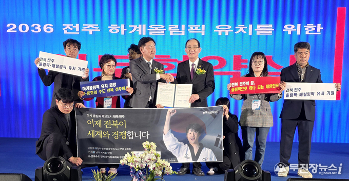이날 협약식에는 김관영 도지사와 최순모 전국호남향우총연합회장이 참석한 가운데, 향우회가 보유한 전국적 네트워크를 활용해 올림픽 유치 홍보와 지지 확산에 나서기로 했다.