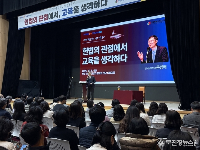 전북특별자치도교육청교육연수원(원장 민완성)은 8일 전주 치명자성지 세계평화의전당 유항검홀에서 문형배 전 헌법재판관을 초청해 ‘헌법의 관점으로 교육을 생각하다’를 주제로 직무연수를 개최한다.