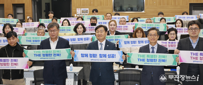 전북특별자치도 감사위원회는 10일 전북테크비즈센터에서 김관영 도지사와 14개 시·군 도민감사관 등 60여 명이 참석한 가운데 ‘2025년 하반기 도민감사관 정기 간담회’를 개최하고, 청렴한 도정을 위한 민·관 협력 의지를 다졌다고 밝혔다.