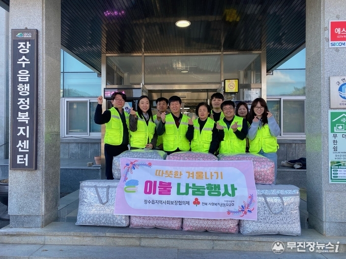 지역사회보장협의체와 협력해 지역내 독거노인 등 취약가구 맞춤형 돌봄 실천장수군 장수읍이 지역 내 복지사각지대 해소와 취약계층의 따뜻한 겨울나기를 지원하기 위해 독거노인과 저소득 취약계층 30가구를 대상으로 ‘겨울 이불 지원사업’을 실시했다고 17일 밝혔다.
