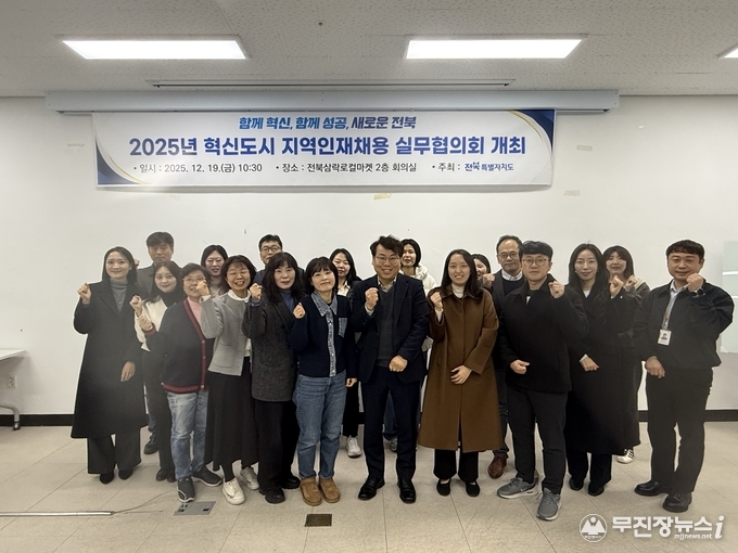 전북특별자치도가 19일 전북혁신도시 전북삼락로컬마켓에서 국민연금공단 등 6개 혁신도시 이전공공기관과 도내 대학 관계자 20여 명이 참석한 가운데 ‘제11차 혁신도시 지역인재채용 실무협의회’를 개최했다.