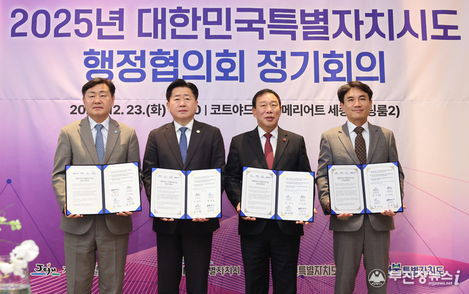 정기회의에서는 ▲2025년 상생협력사업 추진 성과 보고 ▲2026년 대한민국특별자치시도 행정협의회 주요 과제 논의 ▲차기 대표회장 추대(강원) 등을 의결하고, 「대한민국 특별자치시도 공동성명서」를 채택했다.