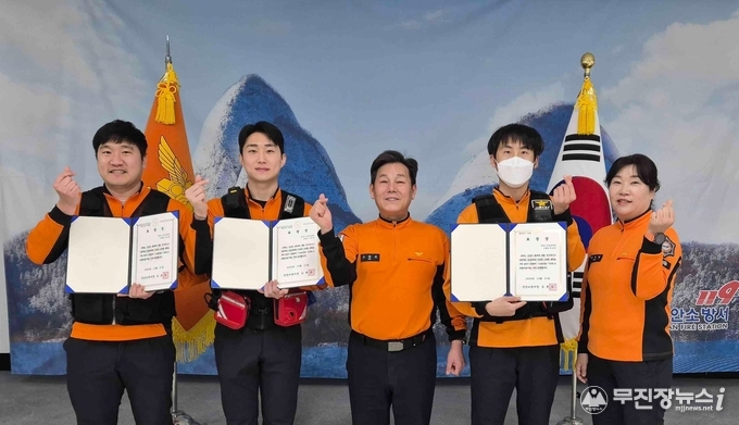 진안소방서는 심정지 환자에 대한 신속하고 전문적인 응급처치를 통해 소중한 생명 소생에 기여한 구급대원 3명을‘2025년 하반기 119히어로 구급대원’으로 선발하고 소방서장 표창과 함께 포상휴가 1일을 수여했다.