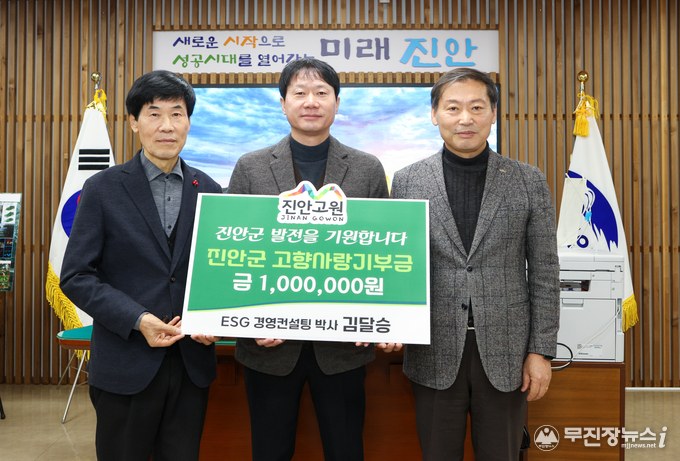 김달승 ESG경영컨설팅 대표는 “고향사랑기부제를 통해 지역에 실질적인 도움이 될 수 있어 뜻깊다”며 “진안군의 지속가능한 발전을 응원한다”고 전했다.