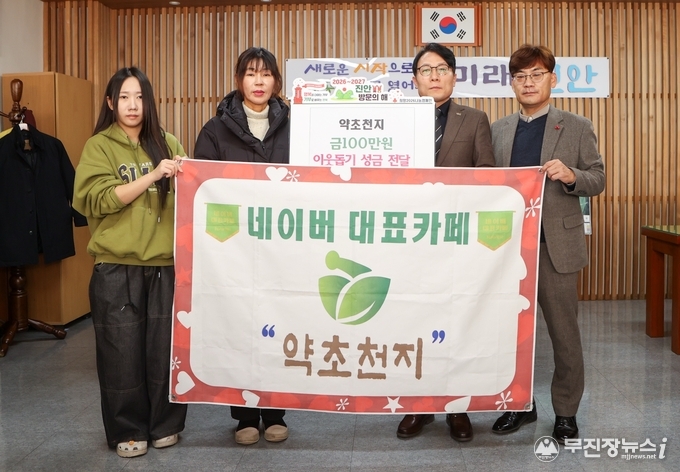 진안군은 네이버 카페 ‘약초천지’에서 지난 8일 이웃돕기 후원금 100만원을 전달했다고 밝혔다.