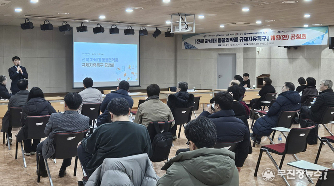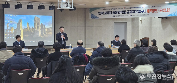 전북특별자치도는 12일 전북테크노파크 2층 대강당에서 ‘전북 차세대 동물의약품 규제자유특구 계획(안)’에 대한 공청회를 개최했다.