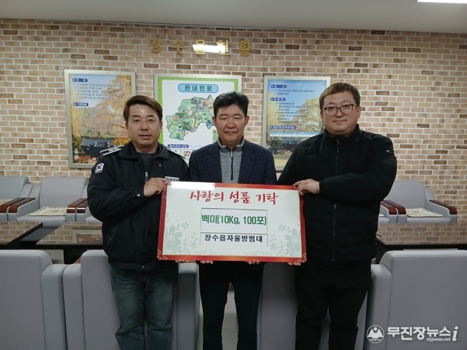 이날 기탁식에는 장수읍자율방범대, 장수라이온스클럽, 해오름토마토농장이 참여해 십시일반의 정성을 모았다.