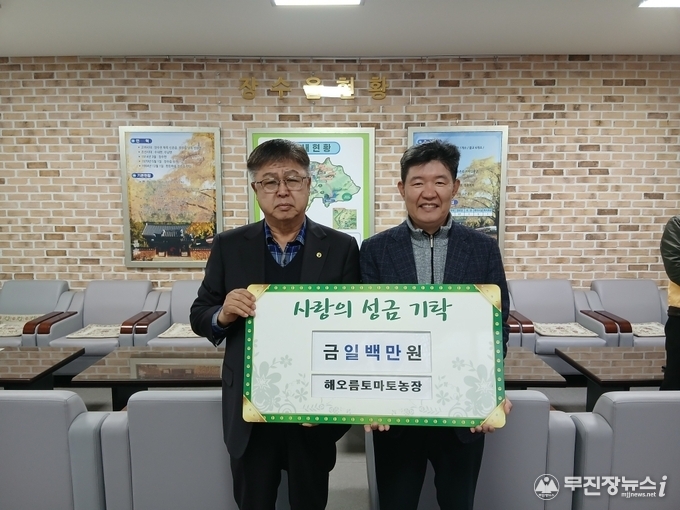 또한 해오름토마토농장(대표 한동근)도 성금 100만 원을 기탁하며 나눔에 동참했다.