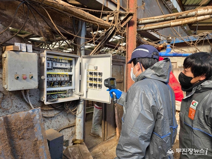 점검에서는 열화상카메라를 활용해 ▲축사 내 전기·기계 장비의 과열 여부 ▲전기 배선 이상 유무 ▲구조물 온도 변화 상태 등을 정밀 확인했다. 현장에서 확인된 위험요인에 대해서는 즉시 개선 사항을 안내하고, 필요한 보완 조치가 이뤄질 수 있도록 현장 지도를 병행했다.