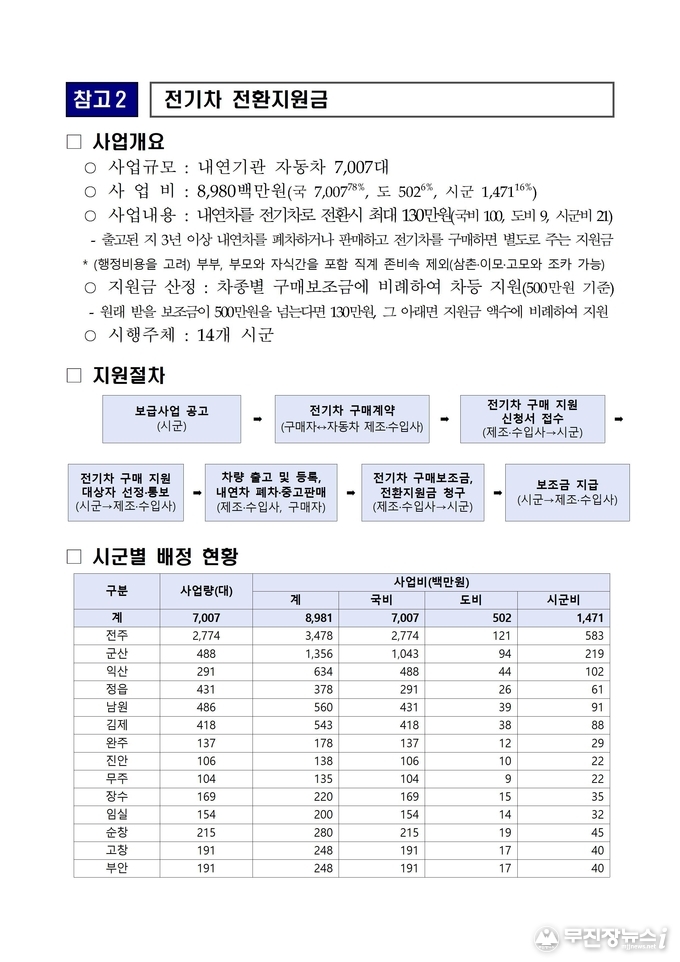 올해, 보조사업의 특징은 전기차 전환을 촉진하기 위해 ‘전기차 전환지원금’을 신설하여, 기존 내연기관차를 폐차하거나 판매한 뒤 전기차를 구매하는 경우 최대 130만원을 추가 지원한다는 점이다.