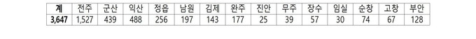 올해 모집 규모는 총 3,647대로 지난해보다 확대됐다. 시군별로는 전주 1,527대, 익산 488대, 군산 439대, 정읍 256대, 남원 197대, 김제 143대, 완주 177대 등이다.