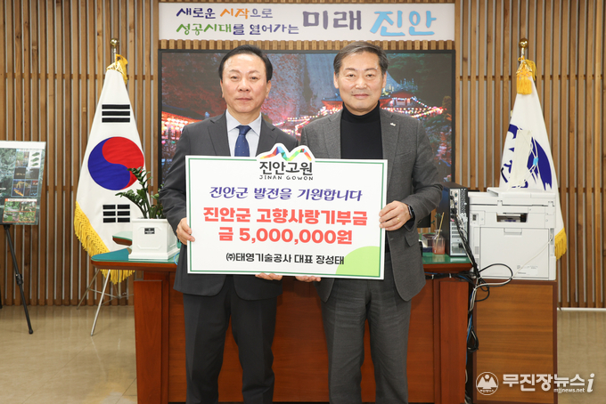 진안군은 10일 ㈜태영기술공사 대표 장성태가 고향사랑기부제에 500만원을 기부하고 기탁식을 진행했다.