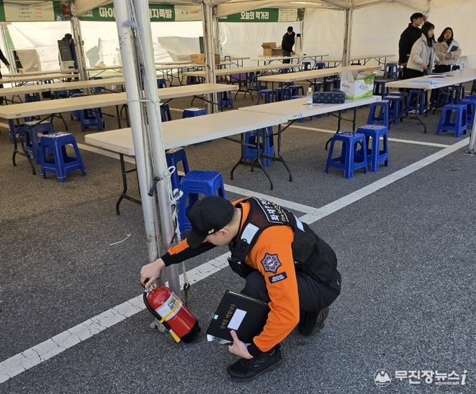 주요 점검 사항으로 ▲관계자 대상 화재안전 및 소방시설 사용법 교육 ▲소화기 무상대여 ▲이동 동선, 대피로 및 소방차 진입로 확보 상태 점검 ▲화기 취급 부스 및 관련 설비의 안전관리 상태 확인 등이 포함됐다.