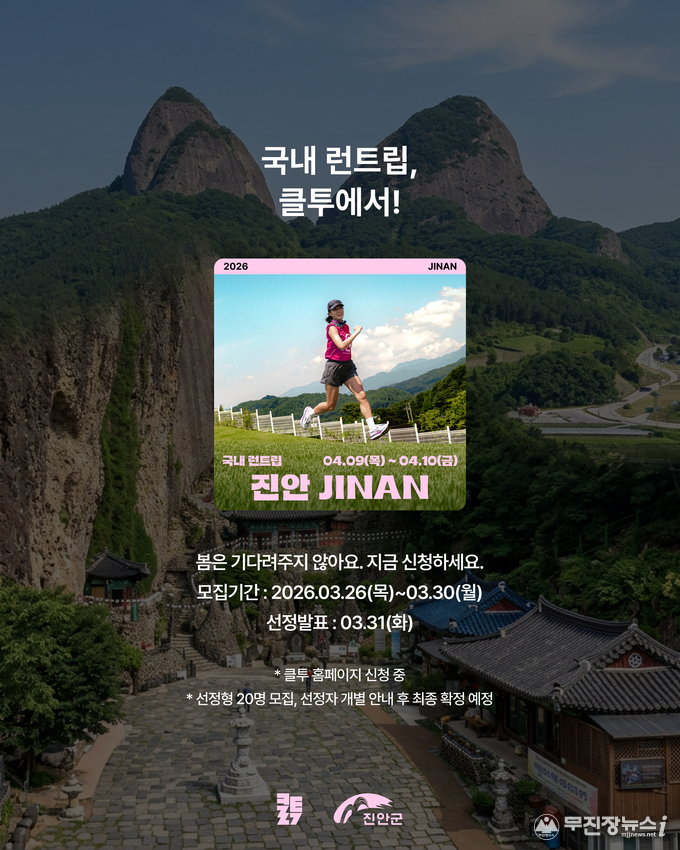 진안군 관계자는 “이번 런트립은 ‘2026-2027 진안 방문의 해’를 맞아 진안의 훌륭한 생태자원과 웰니스 관광의 매력을 널리 알리기 위해 특별히 추진될 예정”이라며, “아름다운 마이산과 벚꽃길을 달리며 진정한 힐링과 재충전의 시간을 가져보시길 바란다”고 전했다.