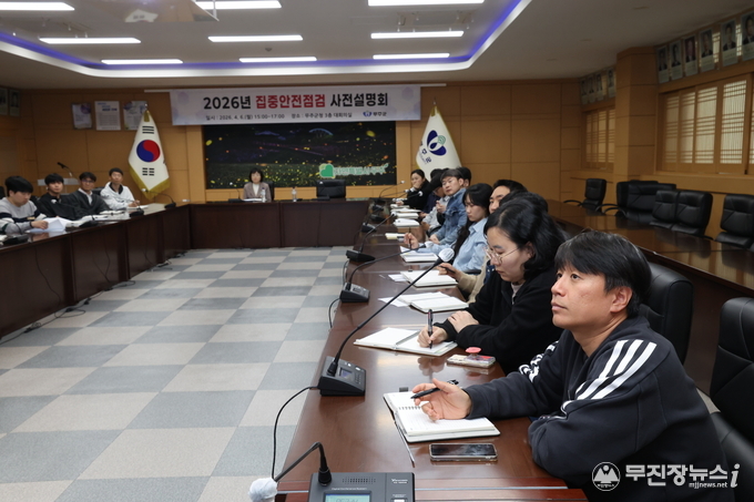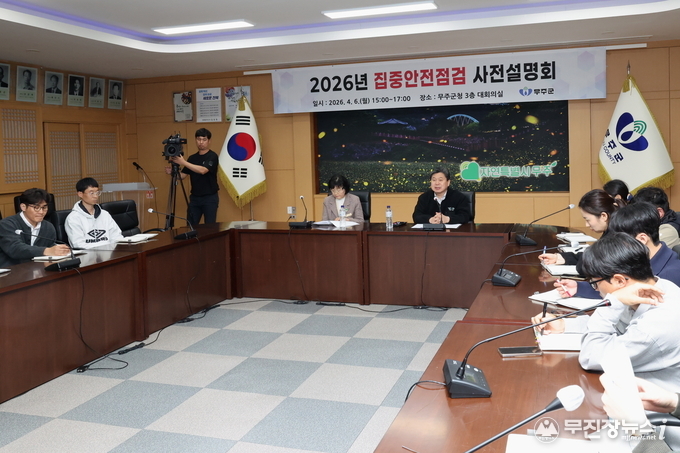 무주군이 ‘군민과 함께 만드는 안전’ 확보에 나선다. 오는 20일부터 6월 19일까지 61일간 ‘2026년 집중안전점검’을 시행할 예정으로, 6일에는 이와 관련한 사전 설명회가 개최됐다.