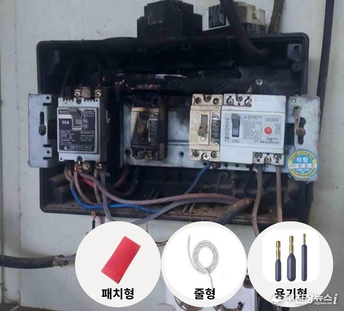 설치 장소에 따라 ▲배전반 내부에 간편하게 붙이는‘패드ㆍ스티커형’▲전선에 감아두는‘와이어(끈)형’▲좁은 공간에 고정하는‘용기형’등으로 구분되며, 별도의 도구 없이 손쉽게 설치할 수 있다는 점도 큰 장점이다.