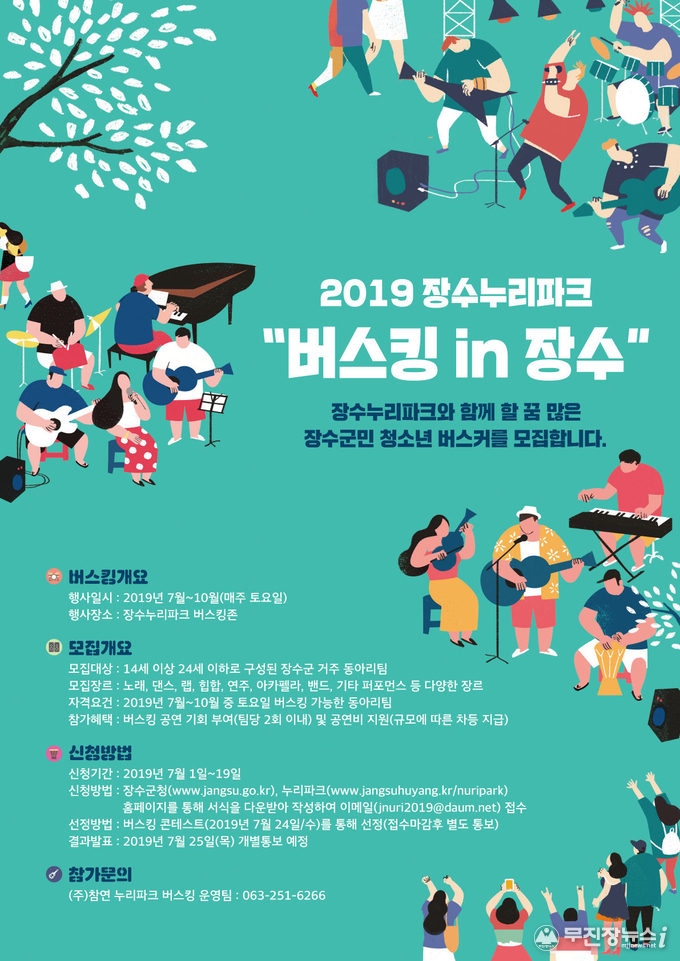 장수군은 이달부터 10월까지 매주 토요일 저녁 장수누리파크 버스킹존에서 열리는 “버스킹 IN 장수”에 함께 할 청소년 버스커를 모집한다.