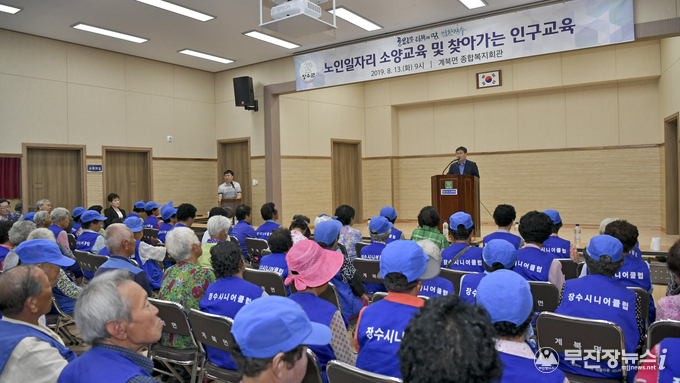 장수군은 13일 계북면 종합복지회관에서 계북면 노인일자리사업 참여자 200여명을 대상으로 찾아가는 인구교육을 실시했다.