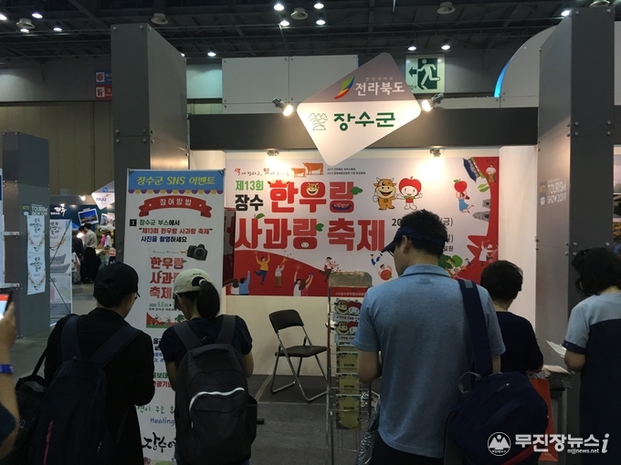 국내의 문화, 의료, 뷰티 등 관광관련 콘텐츠들을 한자리에 모은 국제 관광 네트워크의 장인 「대한민국 국제 관광박람회」는 500여개의 업체가 참가하고 40,000여명 이상이 관람하는 대규모 관광박람회로, 이번 행사에서 장수군은 여행업계 관계자들과 관람객들에게 ‘승마1번지 장수’의 주요 관광명소와 9월 6일부터 8일까지 3일간 열리는 ‘제13회 장수 한우랑 사과랑 축제’를 집중 홍보하였다.