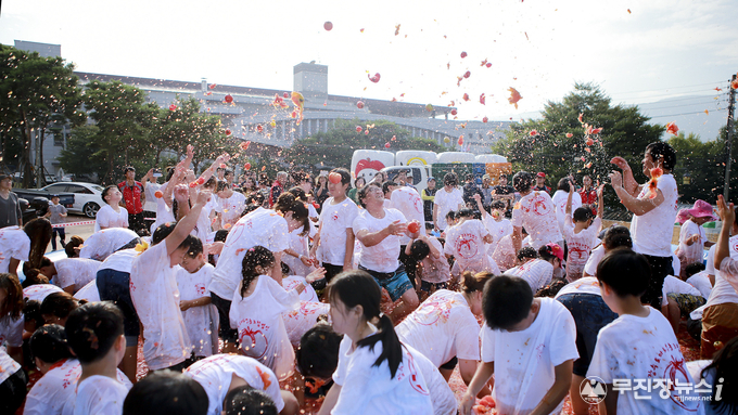 21일 장수군에 따르면 2015년부터 시작해 현재까지 인기 프로그램으로 자리 잡은 ‘토마토 속 황금반지를 찾아라!’는 참가자들이 사각의 에어바운스 안에 금반지 및 경품을 표시한 칩을 넣어놓은 토마토를 으깨며 경품을 찾는 프로그램이다.