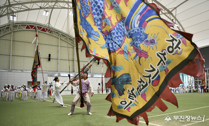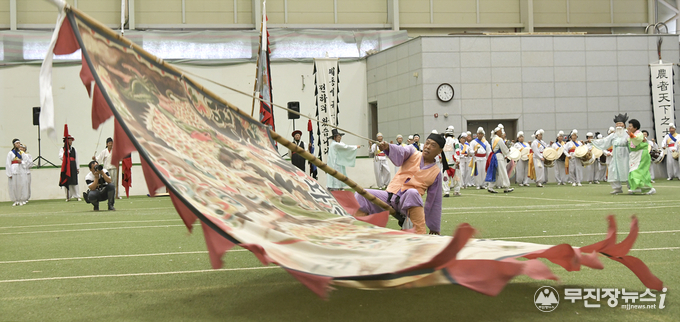 장수군 향토문화유산(무형) 제1호로 지정된 장수깃절놀이가 1일 장수군 다목적체육관에서 시연돼 200여명의 관람객들에게 큰 호응을 얻었다.